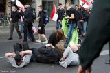 Die Neonazis wurden nach ihrem Überfall von der Polizei lediglich beiseite geschoben und durften anschließend den Tatort ungehindert verlassen. Auch im Anschluß gab es keinerlei Bemühungen, die Täter in der eingekesselten Neonazi-Gruppe zu identifizieren oder festzunehmen. Das Beispiel zeigt wieder mal, dass ein Vertrauen auf den "Schutz" der Polizei in solchen Situationen fehl am Platz ist. Aktive Antifaschist_innen sind gut beraten, sich durchgehend in Bezugsgruppen zu bewegen und jederzeit auf mögliche Angriffe vorbereitet zu sein. Partner_innen aus der Zivilgesellschaft und bürgerliche Gegendemonstrant_innen muss diese Faustregel noch stärker vermittelt werden. Im Zuge der gesamten Auseinandersetzungen am Mehringdamm wurden ausschließlich Antifaschist_innen von der Polizei verhaftet. Das Geschehen, auch die Übergriffe wurden von den Anti-Antifa-Fotografen Christian Bentz und David Gudra dokumentiert.