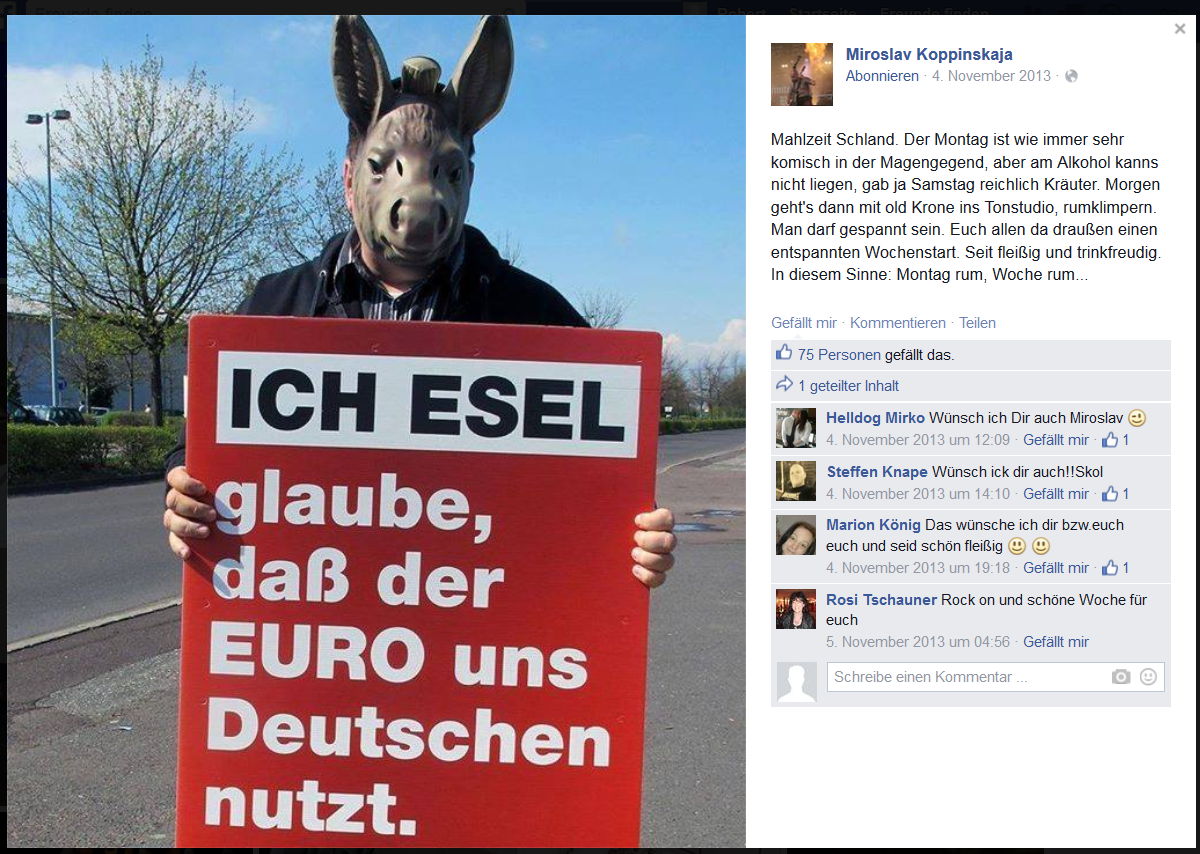 Wer die öffentlich einsehbaren Facebook-Profile der Bandmitglieder Mirko Kopper und Jens Hartmann aufruft, stößt auf über Jahre hinweg getätigte Veröffentlichungen mit rechtsradikalen Inhalten. So postete Bassist Hartmann beispielsweise erst kürzlich einen antisemitischen Beitrag über die „Holocaust-Lüge“, fabulierte in einem weiteren über die „zudringlichen Assilanten“ und der geplanten Ausrottung des deutschen Volkes und der weißen „Rasse“. Gitarrist Kopper verharmlost derweil die Mitgliedschaft in der SS, verbreitet Wahlkampfpropaganda der NPD und kämpft unermüdlich gegen vermeintlich linke „Meinungsdiktatur“. Im gestern veröffentlichten Dossier „Limited Booze Boys — Vom Ende einer unpolitischen Band“ wurden diese und eine Vielzahl weiterer rechtsradikaler Äußerungen ausführlich dokumentiert.