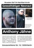 Am 10.04.2025 wurde der Neonazi Julian Milz zu drei Jahren und drei Monaten Haft verurteilt. Milz stand auf der Anklagebank wegen mehrerer brutaler Angriffe auf Andersdenkende. Die Angriffe hat Milz gemeinsam mit seinen Kameraden extrem rechter Jugendgruppen wie der „Deutschen Jungend Voran“ begangen. An den Angriffen beteiligt war auch Anthony Jähne (Grevesmühlener Str. 10, 13059 Berlin).