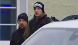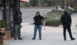 Larsen Aslan (mittig) und Gabor Denes (rechts) fotografieren im Januar 2024 eine antirassistische Kundgebung in Hellersdorf ab.