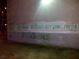 In der George-Orwell-Schule in Lichtenberg soll nun der innenpolitische Sprecher der AfD, Karsten Woldeit, auftreten. Dass der AfD so eine Bühne geboten wird, ekelt uns an. Deshalb sind wir losgezogen und haben der Schule unsere unübersehbare Nachricht an der Fassade hinterlassen. Denn wer sich die AfD ins Haus holt, muss mit unserem Widerstand rechnen.